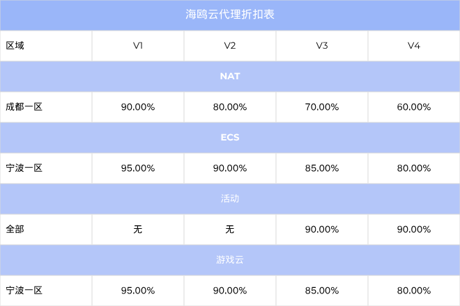代理预存价格及产品折扣表